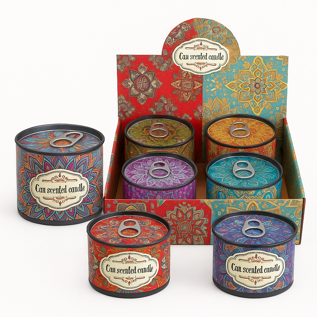7.5cmD x 5cmHÂ Â Scented Candles in Tuna Tin (4 Assorted Fragrances per batch) Price each