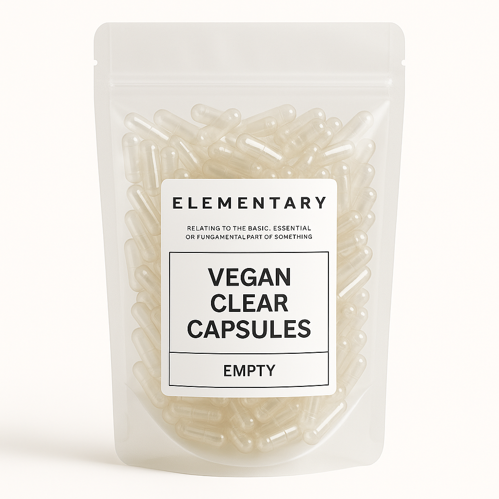 Vegan Clear Capsules are made from 100% plant-based, non-GMO materials, offering a clear, colorless alternative to traditional gelatin capsules. Their transparency allows easy identification of contents, making them ideal for a wide range of supplements and formulations, while remaining fully vegan and environmentally friendly.
